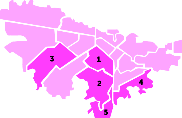 | 1. Usaquén 2. Suba La Campiña 3. Suba Ciudad Jardín 4. Chapinero 5. Barrios Unidos |